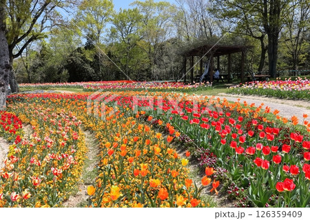 馬見丘陵公園 満開の桜とチューリップ と春の花々
