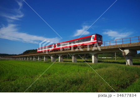 田園地帯を走行する名鉄電車の風景