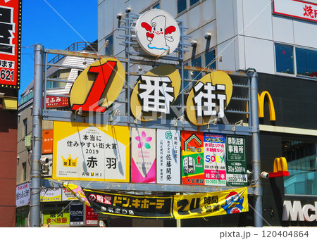 東京都北区赤羽一番街商店街の入口の看板の風景
