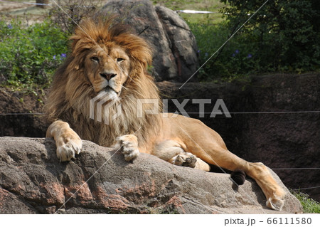 ライオン 百獣の王岩の上で寝そべる