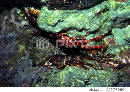岩陰に潜むカニ カニ ショウジンガニ