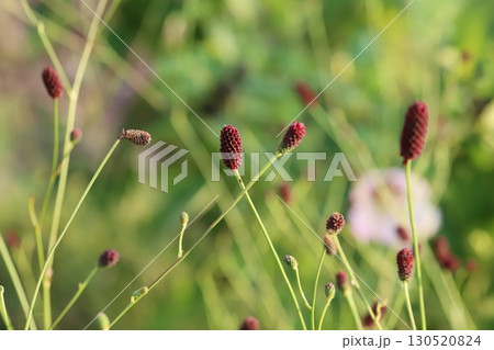 吾亦紅(ワレモコウ)の赤褐色の穂の形が優雅で面白い