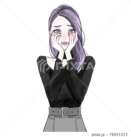 顔を覆う女性 カラー背景