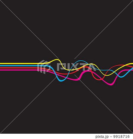 Flowing wavy dots. Colored dots on a black background flowing and waving across the frame. 3D rendering