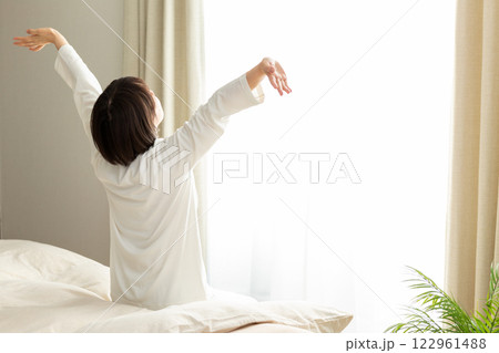 目覚めの良い朝を迎えた女性