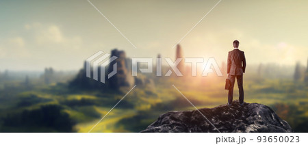 大地を展望するビジネスマン バナー・広告向け横長ビジュアル
