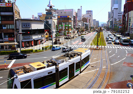 広島市内(原爆ドーム前)を走る広島電鉄、路面電車