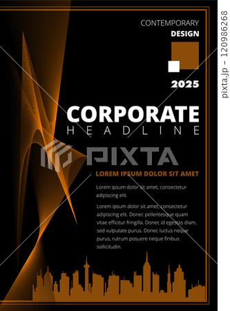 Corporate business flyer template featuring a modern cityscape and abstract design