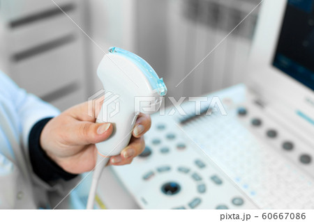 ultrasound machine, scanners and sensors. Medical equipment in the clinic.