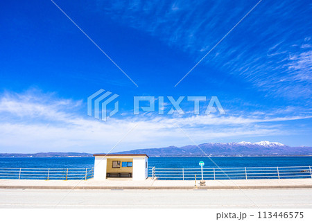 【新潟県_佐渡_越の長浜】恋するバス停・背合(せなごう)