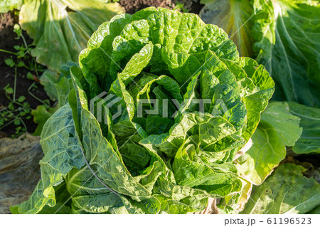 霜が溶け始めた白菜 栽培 (12月) 越冬