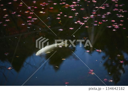 落葉の中を泳ぐ鯉