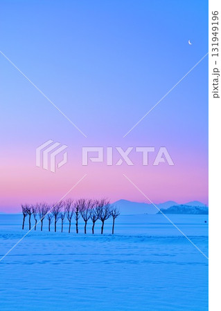 小千谷池ヶ原雪原のハサ木・朝焼けの夜明け