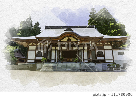 水彩画風 上越 林泉寺 本堂 新潟県上越市