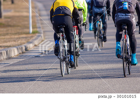 朝サイクリングをしている人々