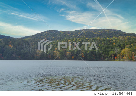 木々の色づき 赤い木の実 赤城大沼湖畔 秋色の風景