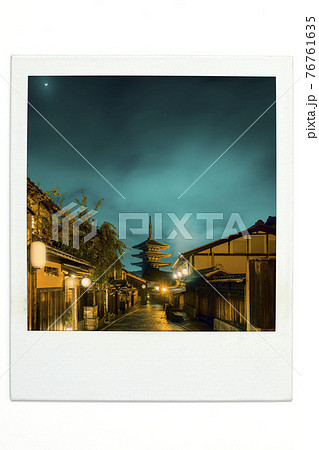 夕闇せまる雨上がりの八坂の塔 ポラ風