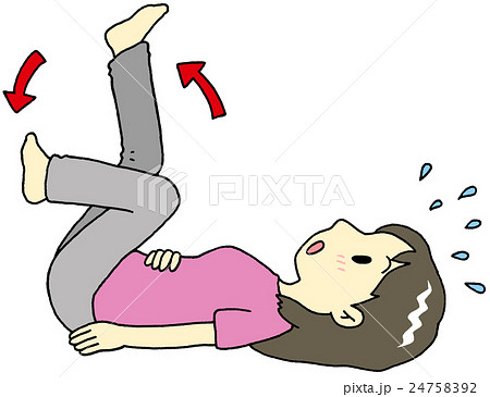 就寝中にこむら返りになって痛がる女性 イラスト