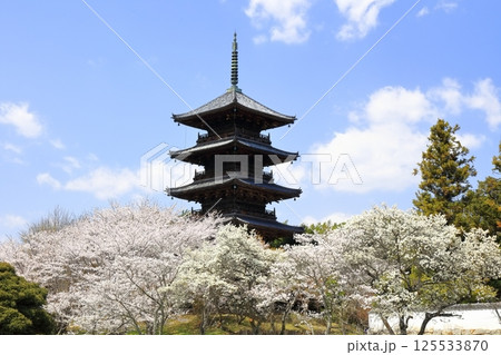 【岡山県】桜咲く春の備中国分寺(桜と五重塔)