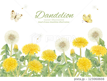 水彩手書きのたんぽぽの花と綿毛のベクターイラストフレーム