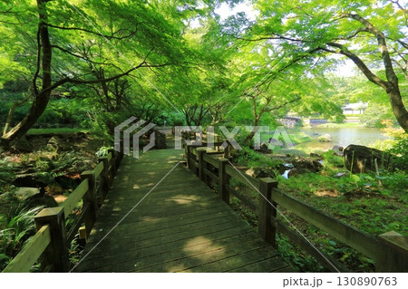 岩手県岩手町石神の丘の夏の日の涼やかなモミジの陰影