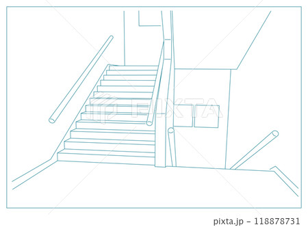 シンプルな校舎内の階段のイラスト 中学校 高校