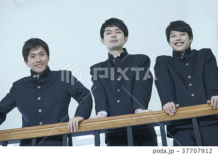 踊り場で座る高校生たち