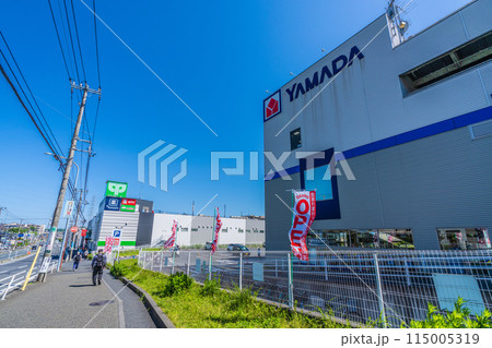 日本の横浜都市景観 横浜市営地下鉄 踊場駅出入口1側からの風景などを望む…=5月10日