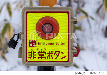 電車の踏切の非常ボタン標識