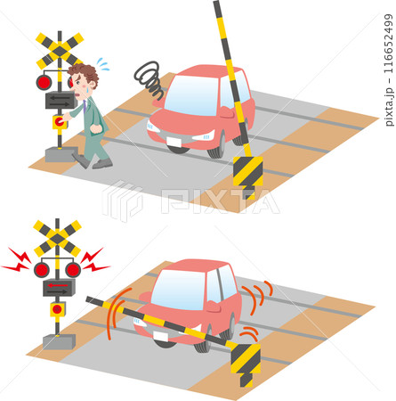 遮断棒が折られてしまった日本の鉄道の踏切のイメージイラスト