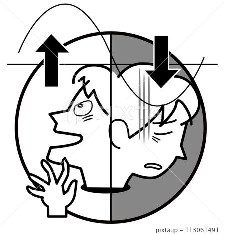 情緒不安定の男性、感情の変化、不安、抑うつ、躁、多幸感