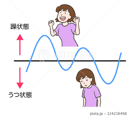 情緒不安定の女性、感情の変化、不安、抑うつ、躁、多幸感