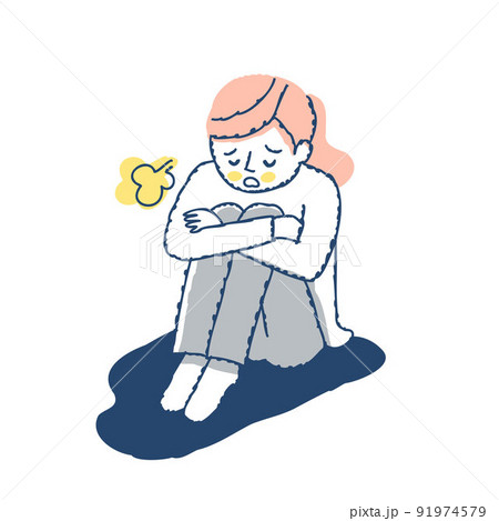 膝を抱えて落ち込んでいる女性