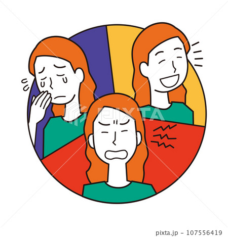 情緒不安定の女性、感情の変化、不安、抑うつ、躁、多幸感