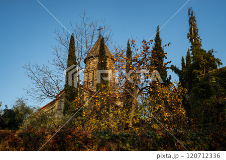 Stunning autumn colors surround historic church in Tbilisi, Georgia