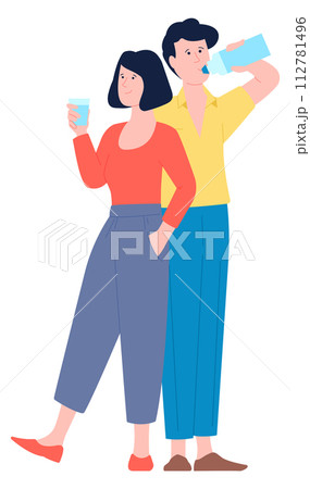 Kids Drinking Clean Water Mobile App Page Onboard Screen Template. Boys and Girls Enjoying Fresh Aqua Drink, Refreshment