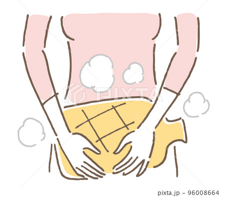 お腹を優しく触る女性のイラストカット(妊娠・腸活・温活・便秘解消)
