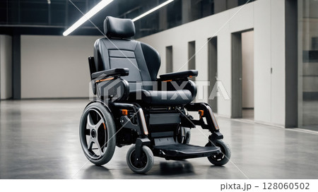 Modern electric wheelchair standing in a spacious hall