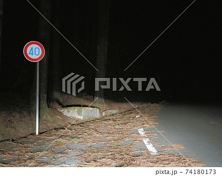 深夜の山道と道路標識