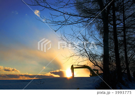 夕焼けと重機