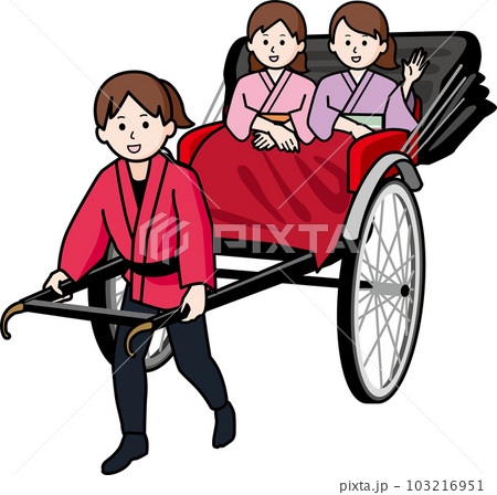 人力車 女性車夫と着物姿の女性客