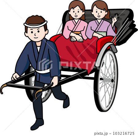 人力車 車夫と着物姿の女性2人