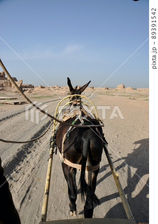 シルクロード 中国 新疆ウイグル自治区 トルファン 高昌故城 ロバ車風景, 景色、青空, 晴れ, 快