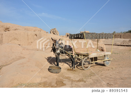 シルクロード 中国 新疆ウイグル自治区 トルファン 高昌故城 ロバ車