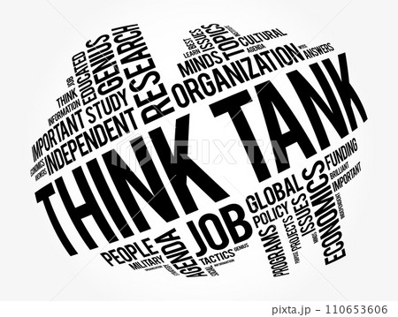 Think Tank - research institute that performs research and advocacy concerning topics, word cloud concept background