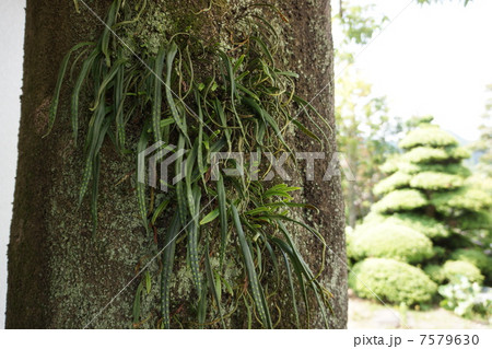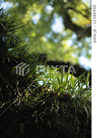大木に着生した植物 ノキシノブ 京都御苑