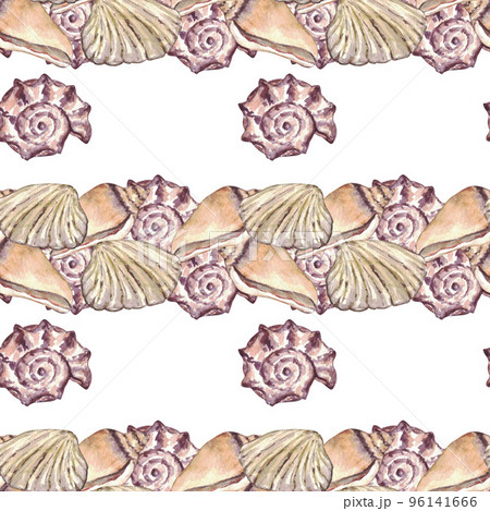 Watercolor sea shell seamless pattern. Hand drawn seashells texture vintage ocean background.