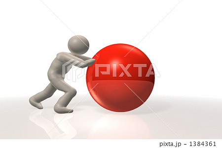 大きなボールを転がす人物