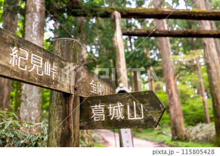 花の名山と自然豊かな、金剛山の案内看板(奈良県御所市高天)※作品コメント欄に撮影位置