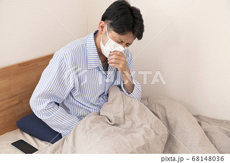 ベットで寝る おじいさん 自宅療養、ホテル待機など